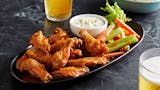 Our signature wings marinated with Buffalo sauce comes with Ranch .
